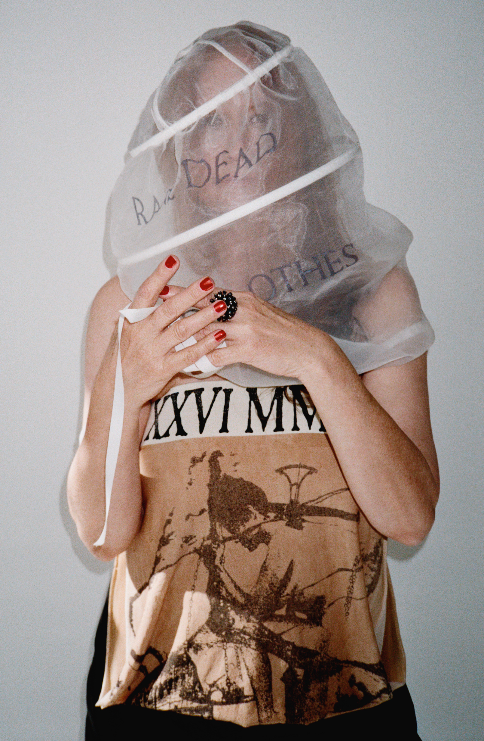 Karen Finley wearing Women’s History Museum. Makeup by Tomomi Gonzalez. Photograph by Yulu Serao.